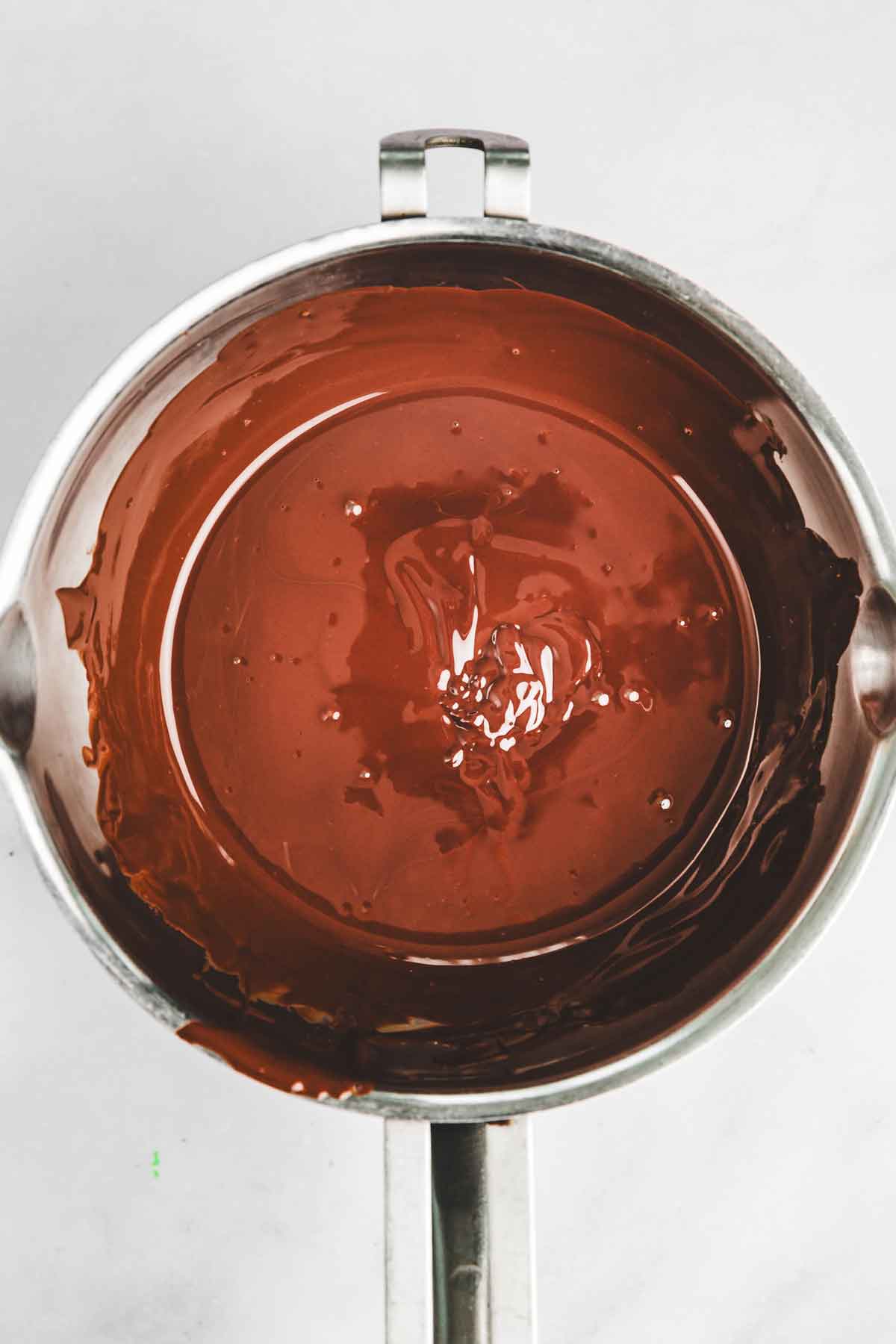 Étape 1 : Faire fondre totalement le chocolat noir au bain marie placé dans un récipient résistant à la chaleur, placé sur une casserole contenant un peu d'eau chauffé sur un feu moyen.