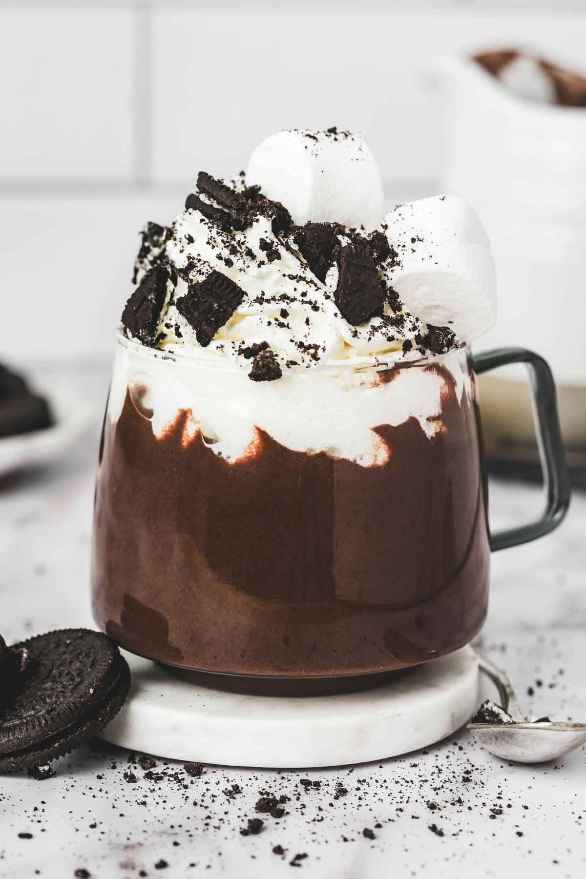 Envie d’une pause gourmande ? Ce chocolat chaud aux Oreo est tout ce dont vous rêvez : crémeux, ultra chocolaté et super facile à préparer ! Avec une touche de chantilly et des chamallows fondants en topping, c'est la boisson parfaite pour un moment de réconfort sucré.
