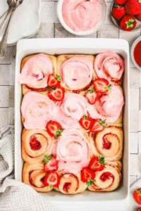 Préchauffez le four à 180 °C. Faites cuire les cinnamon rolls au spéculoos pendant environ 25 minutes, ou jusqu’à ce qu’ils soient dorés et bien cuits. Laissez-les tiédir légèrement dans le plat.