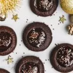 Ces cookies de Noël au chocolat (thumbprint cookies) sont parfaits pour les fêtes ! Avec leur texture sablée et leur cœur de ganache fondant, ils sont faciles à faire et toujours un succès. Idéal pour décorer la table ou offrir en cadeau gourmand.