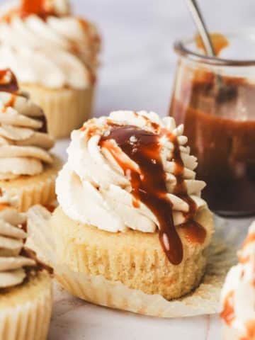 - Chill the cupcakes for about an hour before serving with salted caramel sauce if desired.