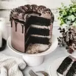Decadent black cocoa chocolate mascarpone cake featuring a black cocoa sponge, cocoa mascarpone frosting, and a rich chocolate drip (for a 6-inch/ 15 cm cake, serves 10-12).