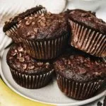 Moist and chocolatey recipe for double chocolate banana muffins with cocoa powder and chocolate chips (for 12 muffins)