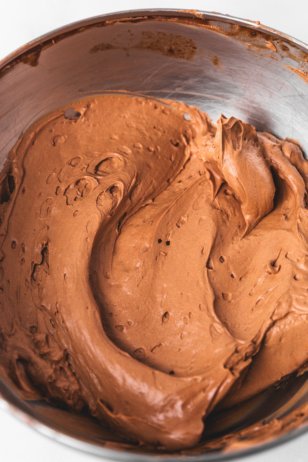 Alternate adding the buttermilk-coffee mixture and the dry ingredients, mixing just until the batter is smooth and fully combined. Don’t overmix.