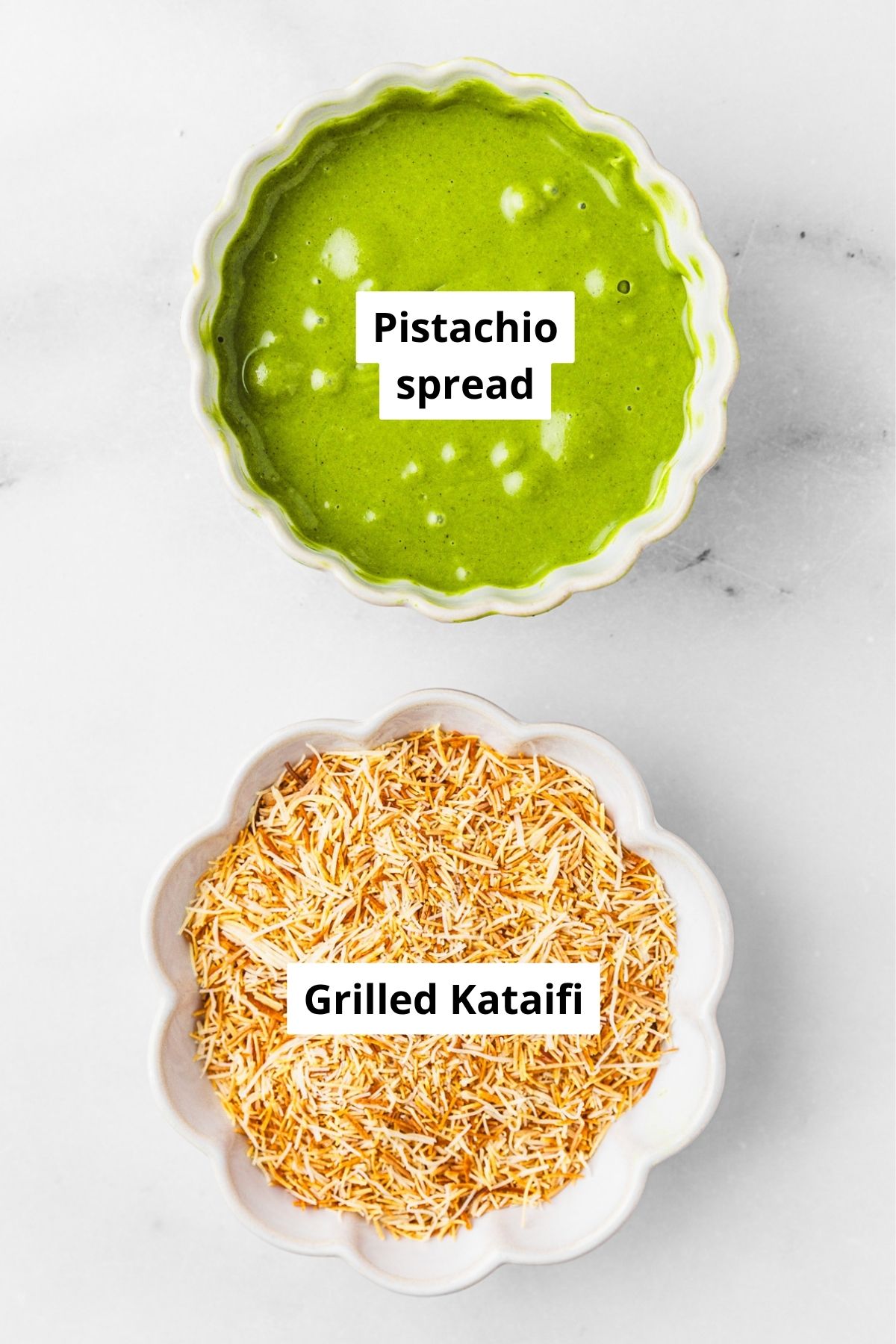 In a bowl, mix the grilled kataifi with the pistachio spread until well combined.