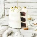 Perfect chocolate cake recipe made with cocoa powder chocolate sponge and whipped white chocolate ganache frosting with mascarpone cheese (6 inch / 15 cm cake, 8–10 slices).