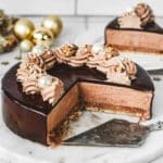 Chocolate Royal, also known as Trianon, is a sophisticated French dessert featuring a tender dacquoise, a crispy praline layer, a silky dark chocolate mousse, and a glossy mirror glaze. (For a 20 cm pan, serves 8-10)