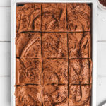Storage: Store the chocolate sheet cake covered in the refrigerator for up to 3 days.