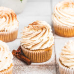 Soft and fluffy cinnamon cupcakes topped with a light mascarpone cinnamon frosting. Perfect cozy treat for fall or any cinnamon lover. Makes about 12 cupcakes.