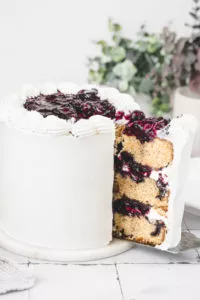 - Repeat with the remaining layers, then frost the entire cake with a thin layer of Swiss meringue buttercream.
