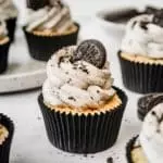 Soft and fluffy vanilla Oreo cupcakes made with crushed Oreo cookies and topped with a light Oreo mascarpone frosting. A simple, bakery-style cupcake recipe that’s perfect for birthdays and Oreo lovers.