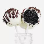- Dip the end of a lollipop stick into the melted chocolate, then insert it into the heart of a cake pop and repeat this step for the other Oreo balls.