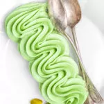 - Finish by gently mixing with a rubber spatula until the pistachio buttercream is silky and ready to use.