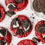This recipe is based on my classic red velvet cookies dough, with crushed Oreos folded in for extra texture and flavor.