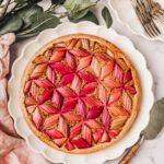 How to make a delicious geometric rhubarb tart recipe with a frangipane cream. Made with a French sweet shortcrust pastry dough filled with an easy almond cream (frangipane) and topped with fresh rhubarb.