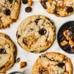 Soft and chewy caramel chocolate chip cookies made with real soft salted caramel pieces and lots of chocolate chips.