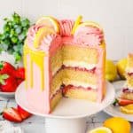 Layer cake with lemon sponge, strawberry filling, lemon mascarpone whipped cream, and strawberry Swiss meringue buttercream (6-inch cake, serves 8–10)