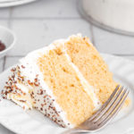 This vanilla cake is a simple, classic recipe with soft, tender layers and a clean vanilla flavor. It’s an easy base cake that works well for everyday baking, small layer cakes, or finishing with a light whipped frosting without being overly sweet.