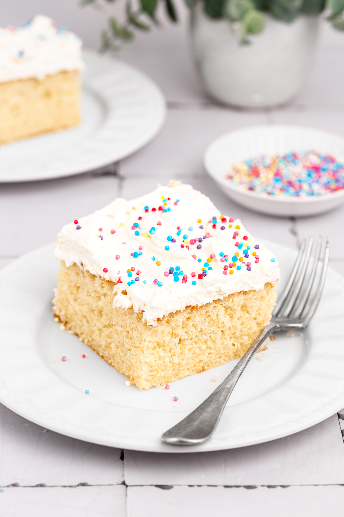 The texture is closer to a fluffy sponge than a dense cake, with a clean vanilla flavor that works for any occasion.
