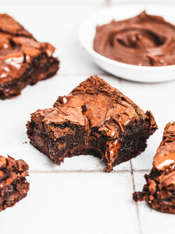 Cutting tip: Do not remove your brownies from the pan after baking and let them harden in the fridge for 1 hour to make them easier to cut into neat pieces.