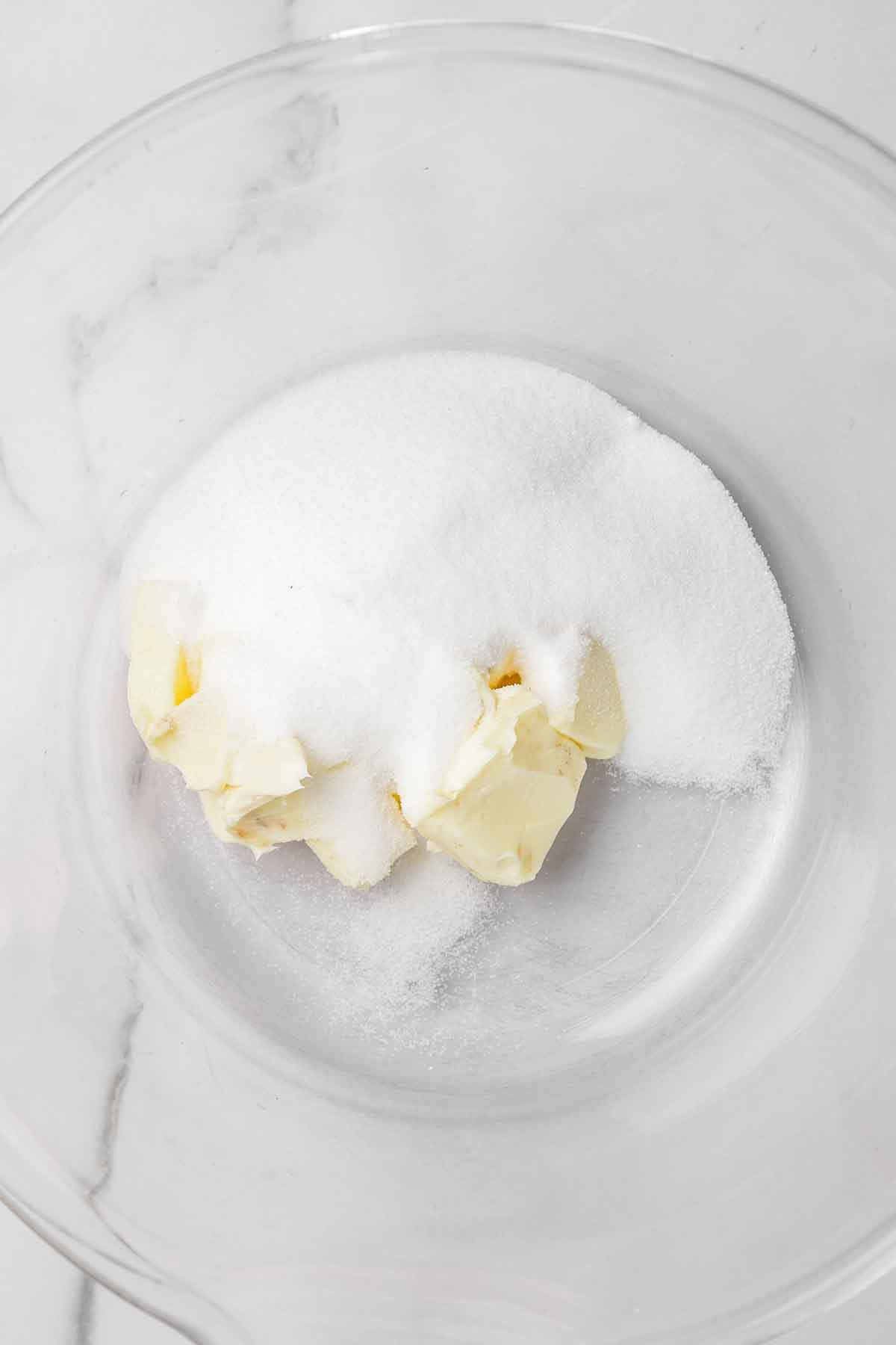 - Start by placing the softened butter in the mixing bowl of your stand mixer with the powdered sugar, and mix with the whisk attachment for 5 minutes on medium speed.