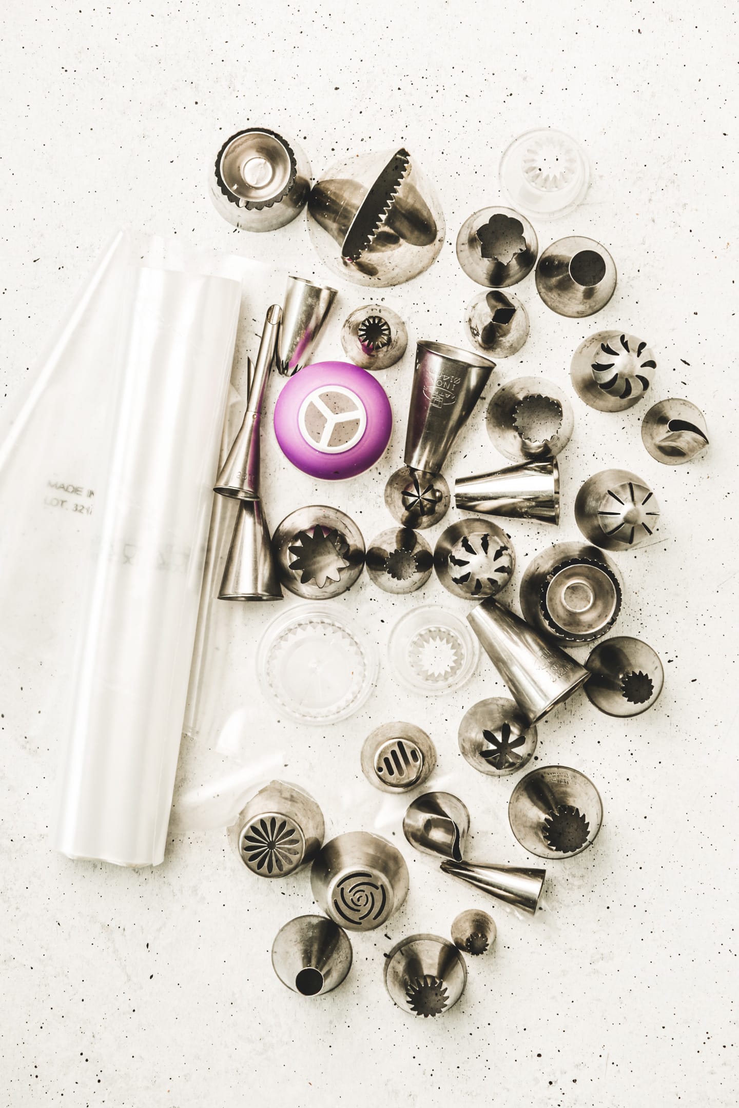 - Un adaptateur de douille hyper pratique pour changer de douille en cour de route sans à avoir à vider votre poche pâtissière et vous en mettre plein les mains.
