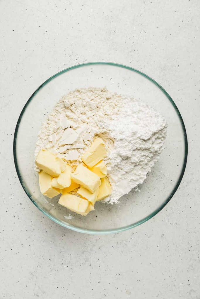 - Placer tous les ingrédients dans un robot mixeur, la farine, le sucre glace et le sel te mixer à vitesse rapide pendant quelques secondes.