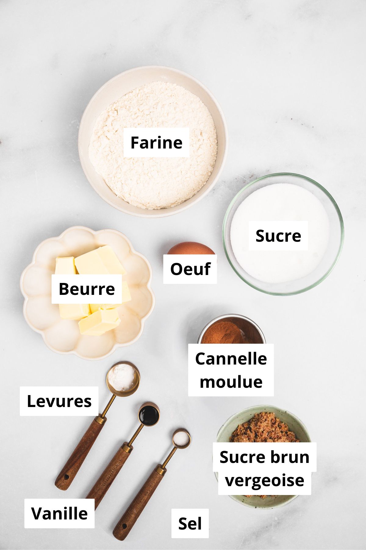 - Sucre : uniquement du sucre en poudre pour apporter de la douceur et une texture classique.