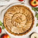 Comment faire une délicieuse tarte aux pommes classique toute simple avec une pâte brisée croustillante, une compote de pommes et des tranches fines de pommes. un dessert classique parfait à toute occasions.